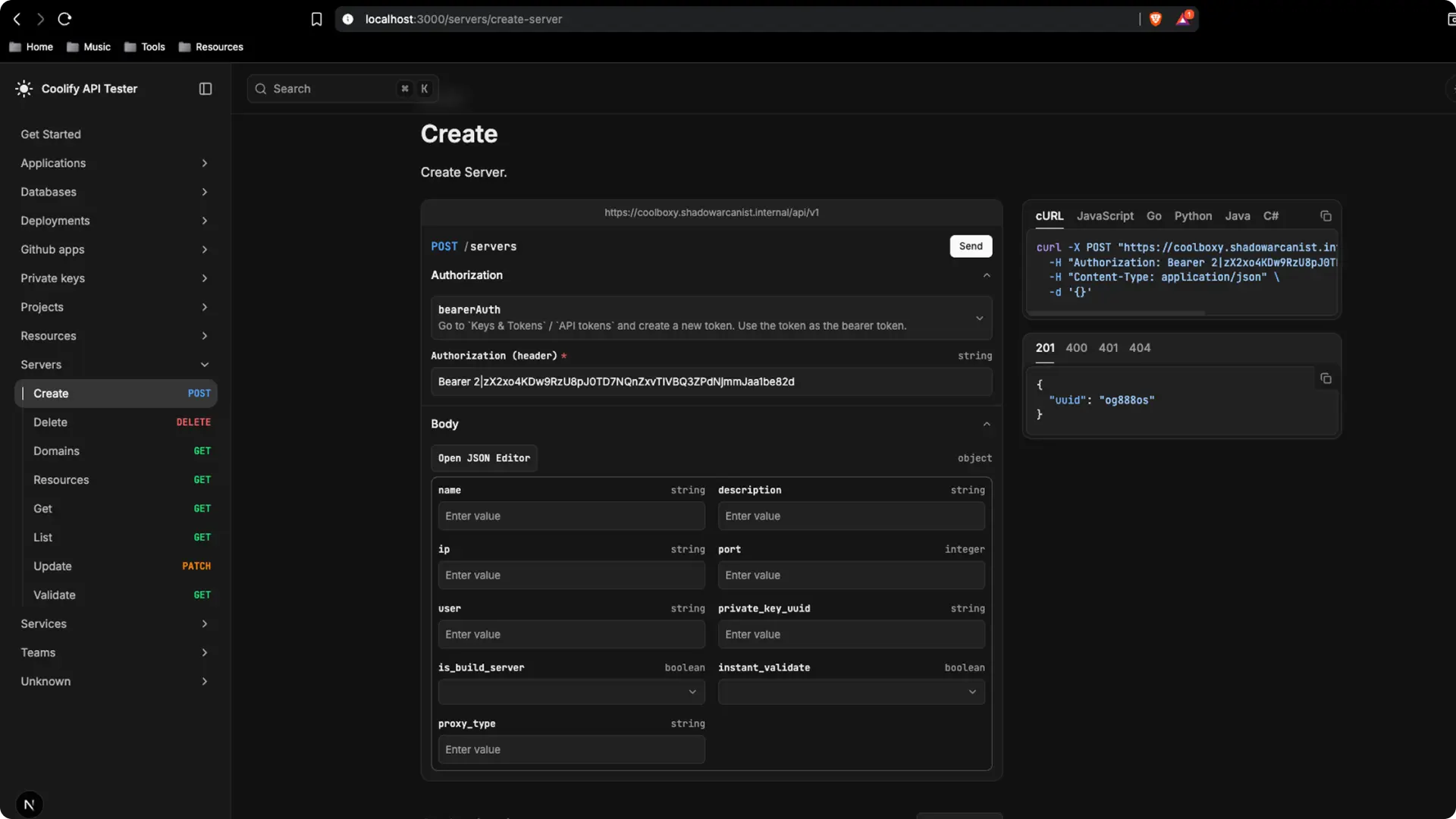Coolify’s documentation provides API guides and tools, but I wasn’t satisfied with the UI and wanted a more convenient way to test APIs without manually writing curl commands.